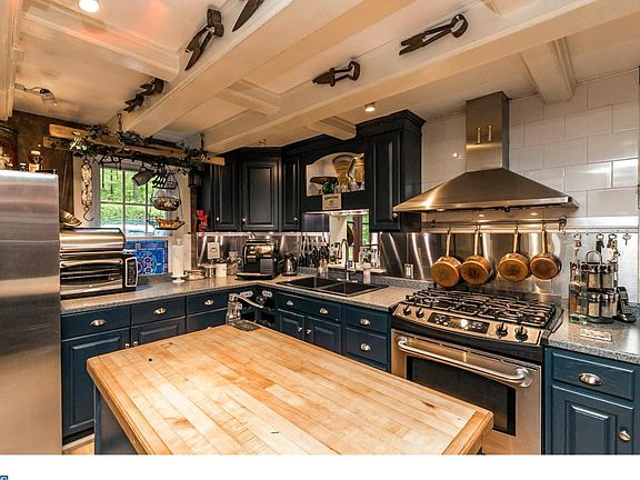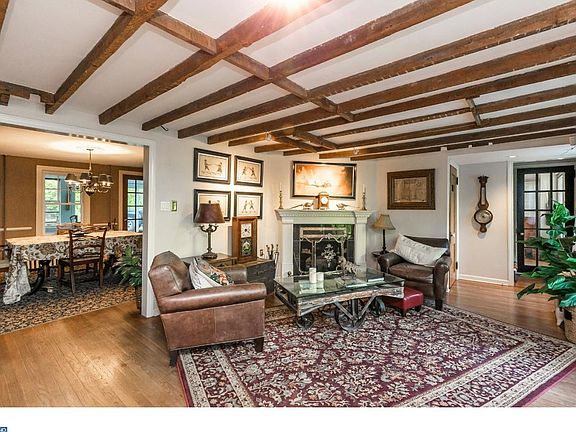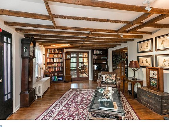 This well appointed single offers it all! From the stately exterior grand staircase and location near the park, this property is truly picturesque. The living room centers around the fireplace and warmth of the beams, built in bookcases and hardwood floors. Off the living room is the library with built ins and beautiful views overlooking the creek. In addition, a separate home office space with vaulted ceilings is an ideal space to work from home. Additionally off of the living room is the large dining room with hardwood floors and french doors to the cozy family room. The kitchen is straight from the pages of a design magazine, offering an elegant coffered ceiling, a center wood block island and a chef's delight of stainless steel appliances, vent hood and dishwasher. Off the kitchen is a mud room like no other, with vaulted ceilings and tile floors. The second floor is composed of three generous bedrooms all with hardwood floors finishing with a bright and updated hall bathroom. This home is being sold as is, inspections are for buyers knowledge.