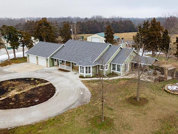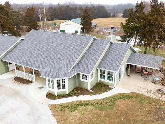 This amazing 3 bed 2 bath true ranch on 19 acres w/gorgeous custom tile throughout & many unique features make this home a must see. Spend the evening around the stunning fireplace or on the spacious patio. The kitchen is designed w/ the cook in mind. Driving up to the home is perfect for winding down from the workday, lovingly planted with flowers that bloom through the seasons to keep this property beautiful. Attached garage has a dumbwaiter elevator that makes storage in the attic a breeze. Large 56x44 building to store all of the equipment for the acreage. The 40x30 barn has runs to exterior pens set up for small animals. Truly the perfect small acreage setup. Come take a look and make this house your new home.
