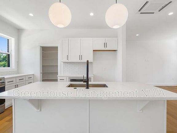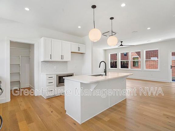 Ten-minute walk to Bentonville Square, 8th St market, The Momentary, Walmart Home Office, and Crystal Bridges. These lavish townhomes have 3 stories with a spacious open-concept layout. Perfect for the inspired, the kitchen includes custom soft-close cabinets and an enormous walk-in pantry. Before heading upstairs, discover the patio for a delightful oasis. Both bedrooms are upstairs with an end suite bathroom for privacy and convenience. Photos may be of similar unit. -Schedule your Self-Tour today. -Scan the QR code in the photos or visit our website to schedule. ghmNWA com / for-rent Go Deposit Free?? Be on the lookout for an invite from Obligo!