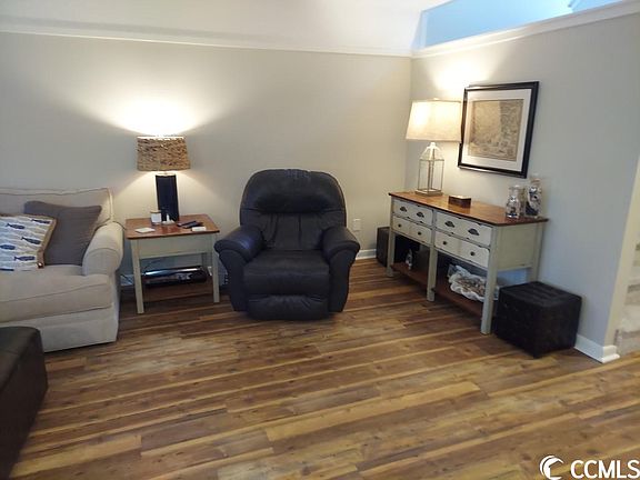 Selling Furnished! Salt Marsh Cove #8B is located near the pool, and short walk to the saltwater creek dock. There is a covered porch entry to the first floor, and a hallway foyer with a half bath. The first floor has Luxury Plank flooring, living area with Plantation Shutters, dining area with sliding glass doors to a 3 season porch, and a beautifully renovated kitchen with breakfast bar, stainless appliances, and solid surface counter tops. The laundry room is adjacent to the kitchen. Upstairs offers 3 bedrooms, 2 baths. The master bedroom has sliding glass doors to a private balcony, The master bath has a walk-in shower. The 2 guest bedrooms share a hall bathroom with powder room and a tub/shower combination. Salt Marsh Cove is located on the creek on the mainland at Litchfield. It is about a 5 minute drive to the ocean at Litchfield Beach and convenient to grocery stores, shopping, restaurants, golf courses and all the activities at Pawleys Island & Litchfield Beaches.