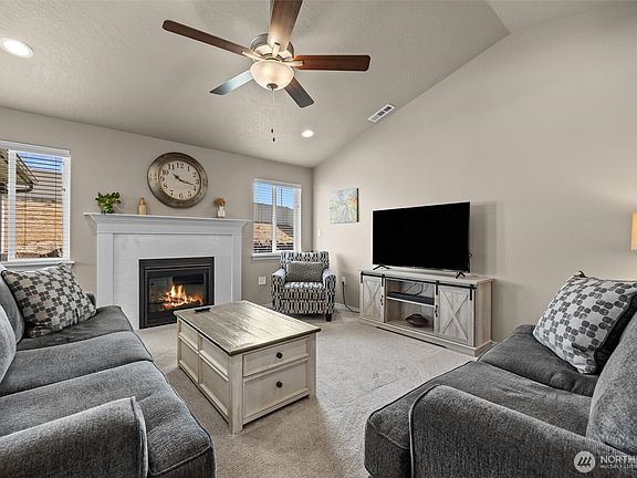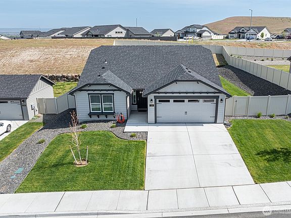 Seller offering 1 year home warranty to buyer! Like-new Prosser home, move-in ready & designed for comfort & efficiency! This single-level gem boasts an open layout with soaring vaulted ceilings, creating a bright & airy living space. Enjoy a spacious living room with a gas fireplace, a sunny dining area, & a stylish kitchen featuring a breakfast bar, stainless steel appliances, & generous counter space. The private primary suite includes 2 large closets & 4-piece en-suite bath. 2 additional bedrooms & a full guest bath offer space for all. Outside, unwind in the fully fenced yard with a covered patio, manicured lawn, sprinkler system & stunning Mt views. Convenient access to shops, dining & recreation. Don't miss out on this Prosser gem!