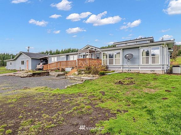 You don't want to miss this beautiful country setting on 4.77 acres close to I5! Triple wide home provides ample space for all your needs! Over 2400 square feet with 3 bedrooms and 2 bathrooms, large living space, kitchen, and formal dining. Also enjoy the indoor, cement, heated pool, and pool house with extra shower and bathroom! Brand new 30 year roof installed just a couple of months ago. Great to use all year! Several outbuildings and big shop, not to mention the large garage with additional attached living space.