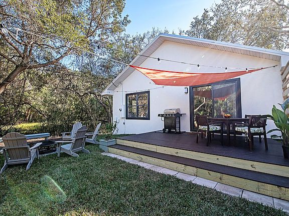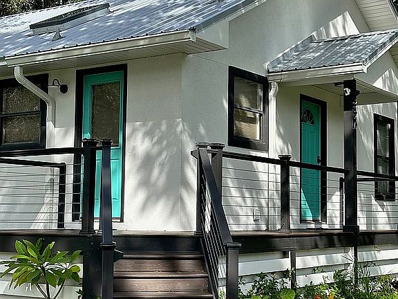 Renovations in the last year include: new metal roof and skylight, new A/C, new composite deck and porch, new paint inside and out, new butcher block countertops, refinished kitchen cabinets, new fans and light fixtures, all switches and outlets replaced, new window coverings.