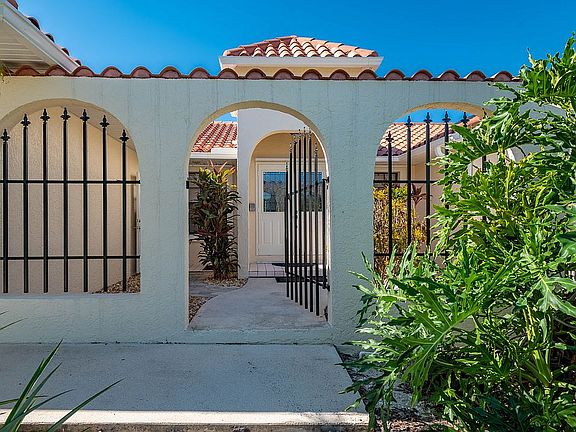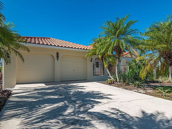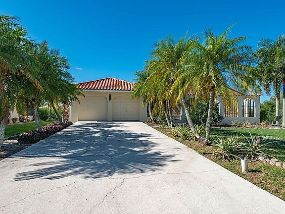 117 feet of waterfront with intersecting canal and mangrove views. Access to Charlotte Harbor, leading to the Gulf of Mexico. 3-2-2 home is 1761 square feet under air. Was the original model home for the deed restricted San Sebastian Harbor community, the best lot in the community! 155 feet deep, lushly landscaped, private lot backed up to mangroves. Inside the gate, enjoy newly paved courtyard. See the freshly painted exterior and enter through the double doors. This recently painted split bedroom floor plan has vaulted ceilings, exuding spaciousness. Kitchen has new granite, breakfast bar and sliders to large deck. Master bedroom suite has two large walk in closets and sliders to Florida room. Master bath has dual vanities, shower and jetted tub. New AC, septic, plumbing recipe and electrical panel 2020. Kitchen and LR renovated 2021. New clay tile roof 2022. Go down by the water and relax on new deck with boat lift Concrete block construction and full hurricane shutters. Community pool, tennis.