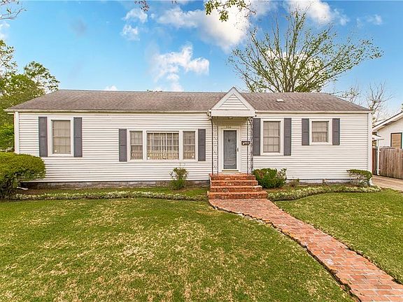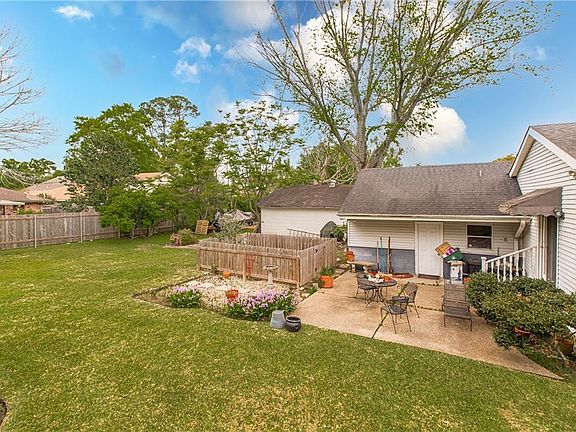 Don't miss out on the opportunity to own this beautiful home on a HUGE lot in River Ridge. This 3 bedroom 2 bath home features 9 foot ceilings throughout with formal living room up front and a den in back. Primary bedroom has a connected primary bath. Kitchen opens to both the formal living room and the den via the dining room. Enjoy relaxing evenings on the back patio overlooking the huge back yard. Large detached garage stores the laundry room and workshop or car storage. There is also an additional 18x27 two story detached garage which could serve multiple uses. Property is located in an X flood zone which could help lower flood insurance costs!
