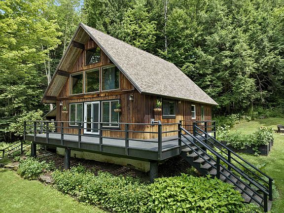 Located on aptly named Stowebury Road, this charming 1970’s chalet is just minutes to both downtown Waterbury, Stowe Village and world-class skiing at Stowe Mountain Resort. Tucked away on this dead end road this home offers privacy, convenience and comfort as either a full-time residence or a welcome Vermont retreat. Outside, the large wraparound porch and landscaped yard offers a place to play, entertain, garden, or simply unwind in the solitude this wooded oasis offers. With recent updates that include a new roof and automatic Generac wall battery to seamlessly power the home during any outages, you’ll find a sense of security and ease here. Your feeling of comfort will continue as you move through the home to find the primary bedroom loft with a walk-in closet and en suite bathroom complete with a dual vanity. Come autumn and winter you’ll be happy to find the warmth of the pellet stove as you watch falling leaves turn to falling snow. There’s so much more to embrace here that can’t be put into words, so dive into the photos, set up your showing and make an offer on this Waterbury home today. Showings begin immediately.