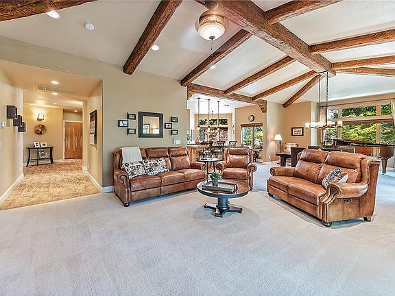 This property exemplifies everything that St. James's Village has to offer--combining the beauty of mountain living with all the advantages of being minutes away from Reno. The open concept living space is perfectly highlighted by the large windows that let in tons of natural light and showcase the beauty of the forest outside. The exposed ceiling beams in the high ceilings and stone fireplace juxtapose the amenities throughout to create the perfect mountain oasis. The gorgeous kitchen provides a great place