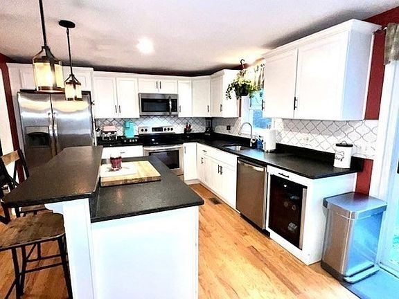 Welcome To One Of Raynham’s Most Sought After Neighborhoods- Titicut Road. This Stunning Home Is Nestled Amongst Meticulously Maintained Homes, Manicured Lawns, A Stone’s Throw From Raynham Middle School and LaLiberte / Merrill Elementary Schools and Minutes To Routes 24, 495, 138 and 44! This Home Exudes Curb Appeal With It’s Gorgeous Front Entry, Gorgeous Hardwoods, Newer Kitchen, Stainless Appliances, Two-Tiered Kitchen Island, Dining Area With Slider To A Great Deck Overlooking A Private Fenced-In Back Yard. An Updated Bath with Double Sinks, Ceramics and Linen Closet. The Bedrooms Each Offer Spacious Closets. Descend To An Impressive Finished Basement Featuring A Fantastic Family Room With Brick Fireplace, Den/Playroom/Work Out Room, Bath With Shower and A Sauna! Don’t Worry About the Big Ticket Items~ They’ve All Been Completed For YOU~ New Roof, Windows and Maintenance-Free Vinyl all about 4 years old. Central Air updated in 2019