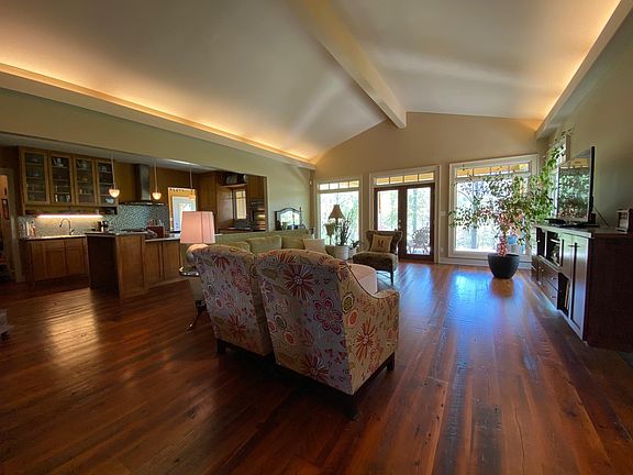 This Modern Rustic home is nestled on just over 20 acres with a 2 acre lake! A chef's kitchen is the heart of this home, complete with a 6 burner gas range, double ovens, prep island with vegetable sink! The open family room has a beautiful backdrop of windows overlooking the property. French doors off the family room take you to a formal dining space! The master suite has a deep soaking tub, tile walkin shower, and private screened porch overlooking the lake. Upstairs are two guest bedrooms and sitting area. A 700sqft guest cabin is also on the property. Extras on this property include generator, in ground storm shelter, on demand water heater, dual fuel heating/air. All info subject to verification.