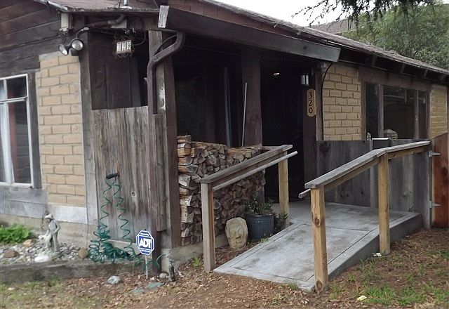 Solid brick adobe home with massive handcrafted beams and window frames , rustic Monterey charm