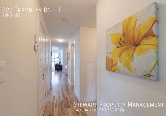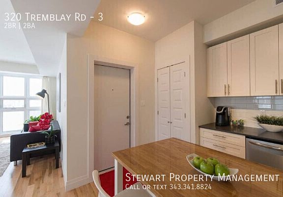 AVAILABLE FEBRUARY 1ST 2025 LARGE 1200 SQFT Welcome home to 320 Tremblay Road known for its residential comfort with convenient access to transit, shopping, and outdoor activities. Features 2 bedroom - 1 bedroom with ensuite bath 2 bathroom In- unit laundry STREET PARKING ONLY UTILITIES EXTRA (JUST WATER INCLUDED) This charming 2-bedroom, 2 - bathroom home boasts an exceptionally bright and inviting living space. The spacious bedroom is filled with natural light, while the open-concept living room and kitchen offer a warm, cozy atmosphere. Additionally, a private balcony provides a perfect outdoor retreat. Location: Nearby amenities (such as grocery stores, pharmacies and banks) Local shops for shopping and dining Countless schools and community centers within the area Closed to various bus stops Nearby to various recreational spaces such as parks and green spaces. Conveniently located clinics and pharmacies for healthcare need Criteria: All pets considered; small pets preferred Non-smoking unit/premises One year lease minimum First and last month rent required This property is managed by Stewart Property Management