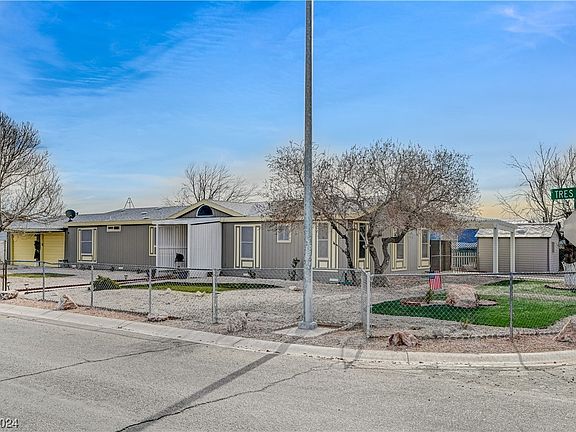 Renovated in 2022! Converted manufactured home on oversized corner lot with no HOA! Spacious kitchen with lots of white cabinets and butcher block island! New stainless steal appliances, farm sink, paint and flooring! Living room has ceiling fan and electric fireplace. Attached 2 car garage and carport, workshop and shed made into a bar. Fully fenced with large covered patio and firepit. New exterior paint in 2023. New smart garage door openers with keypad. New roof in 2022.