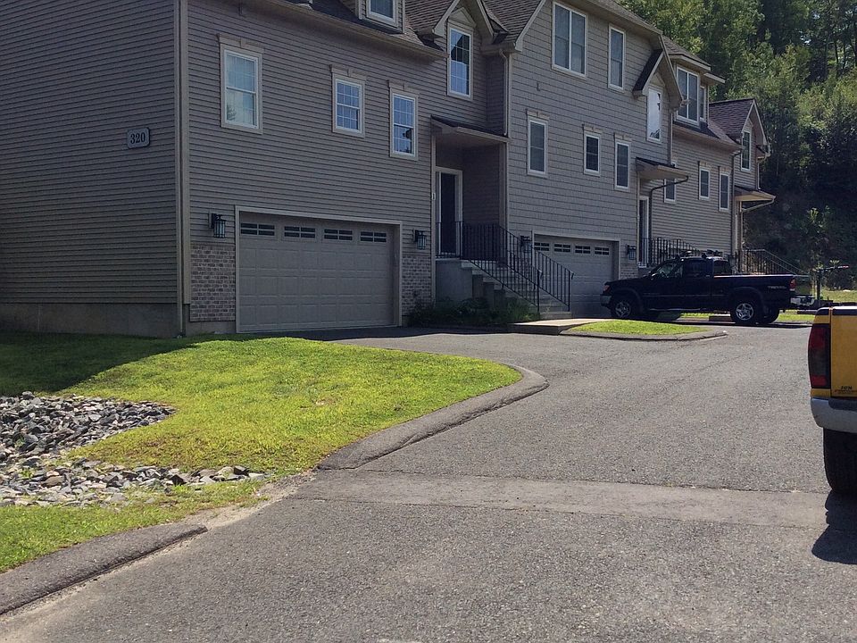 Available NOW-Newer construction,exquisite three bedroom tri level condo on Turkey Hill Road Northampton!- Located in very private rural setting this condo opens up to front entry way- split going up to second level with spacious open living area- has gas fireplace. Has coat closet and door to back deck - ample windows allow for great natural sunlight. Off living area is high end eat in kitchen with granite counters and Cherry cabinets, fully applianced with electric stove, refrigerator and dishwasher! Hallway has laundry closet with washer and dryer hookups, off hallway is half bath. Hallway leads to master bedroom area with bedroom- bedroom has glass sliders opening up to deck with view of back yard, closet and full bath with a double vanity. Living room has step up to nice sitting area that leads up to third level- wide open living space that overlooks the living room. Additional two bedrooms, good size and have closets. Full bathroom on this level. Entry has steps down to basement area- coat closet and door to attached two car garage! Basement also has large concrete floored room with utility components and ample storage! Has carpets and hard wood flooring! Central air. Included in rent- lawn care, snow removal, trash removal and water. Tenant responsible for gas and electric. NO PETS NO SMOKE Represented by Rentnoho.com, upon applying non-refundable fee of $35 per applicant 18 and over and one time rental fee of 60% of one month's rent. No fee to view properties. View additional photos and listings at www.rentnoho.com