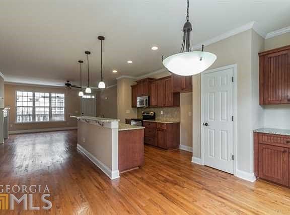 Well-maintained gated townhouse development of only 26 units on the border of Edgewood and East Atlanta. Kitchen with granite and stainless, hardwood floors on main level and terrace level, generous closet space, two-car garage, great natural light, fresh paint and light fixtures, move-in ready! Bonus den/study on terrace level could be third bedroom. Living room fireplace and GREAT LOCATION. Low HOA fee of $100/mo. This is a steal for this much space with so many wonderful features!