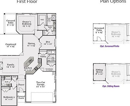 McKee Homes introduces the two-bedroom, two-bath Portico 2020 Classic cottage-style floorplan. The open-living layout with wide interior doorways, minimal steps between indoor and outdoor spaces and sweeping patio and courtyard is made for entertaining or as a private retreat. Family and friends can enjoy each other's company regardless of where they are in the home. The state-of-the-art kitchen with massive, chef-style island is the core of this home, adjoining the cozy living room with fireplace to the dining area, den/flex room, and owner's suite. The owner's suite is a little slice of heaven located at the end of the expansive main living area. Enjoy the private, peaceful back patio accessible from the owner's bedroom with optional sliding glass doors, a spa-like bath with double sinks, cultured marble countertops, beautifully tiled shower, and roomy walk-in closets. A large laundry room with optional sink and cabinets, two double-door closets and a mudroom area with shiplap and hooks between the garage and main living area adds versatility and plenty of storage right where you need it. The Classic elevation features a blend of brick and siding with simple roof lines for a classic, elegant look. Options include a sitting room off owner's bedroom, a walk-in L-shaped shower, deluxe kitchen and screened patio.
