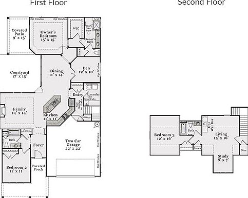 McKee Homes introduces the three-bedroom, three-bath Portico 2020 Bungalow cottage-style floorplan with an open-living layout. Family and friends can enjoy each other's company regardless of where they are in the home. The state-of-the-art kitchen with massive, chef-style island is the core of this home, adjoining the cozy living room with fireplace to the dining area, den/flex room, and owner's suite. The wide interior doorways, minimal steps between indoor and outdoor spaces and sweeping patio and courtyard are made for entertaining or as a private retreat The owner's suite is a little slice of heaven located at the end of the expansive main living area. Enjoy the private, peaceful back patio accessible from the owner's bedroom with optional sliding glass doors, a spa-like bath with double sinks, cultured marble countertops, beautifully tiled shower, and roomy walk-in closets. A large laundry room with optional sink and cabinets, two double-door closets and a mudroom area with shiplap and hooks between the garage and main living area adds versatility and plenty of storage right where you need it. the Bungalow elevation includes an ample second-floor private suite with bedroom, full bath, living room and study as well as an optional wet bar. This versatile space also includes two closets and an additional storage area. Additional options include a sitting room off owner's bedroom, a walk-in L-shaped shower, deluxe kitchen and screened patio.