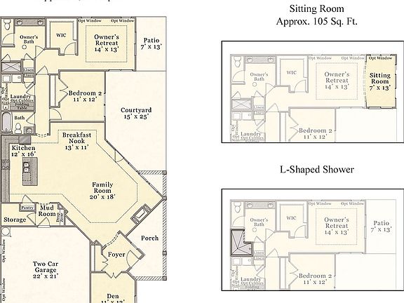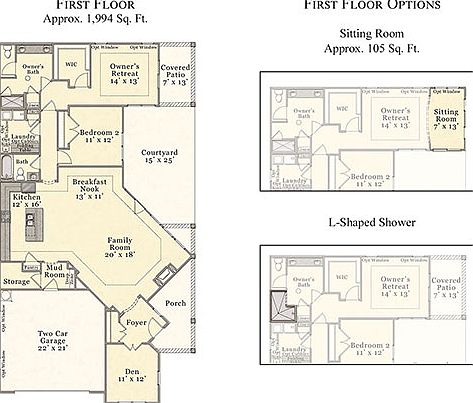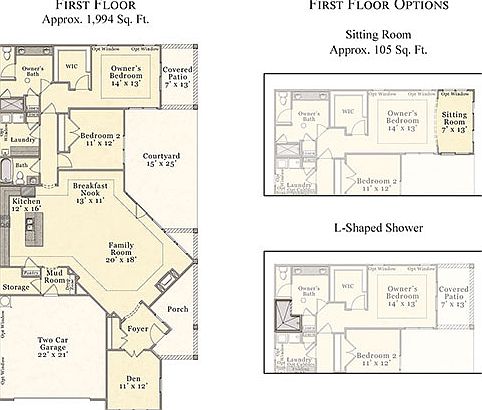 McKee Homes presents the Promenade Craftsman, a beautiful cottage-style home with two bedrooms and two bathrooms. This home features a large great room attached to a gourmet kitchen. A separate den off the foyer can act as an office, study, or reading room. The low-maintenance courtyard is perfect for entertaining or simply enjoying a sunny afternoon. There is also an optional sitting room available off the master bedroom. The Craftsman Collection floor plans include all the great features of our Classic floor plans with custom exterior details that give these homes distinctive elegance and refinement. A blend of stone, siding and specially styled roof lines and supports give our Craftsman Collection a custom upscale look.