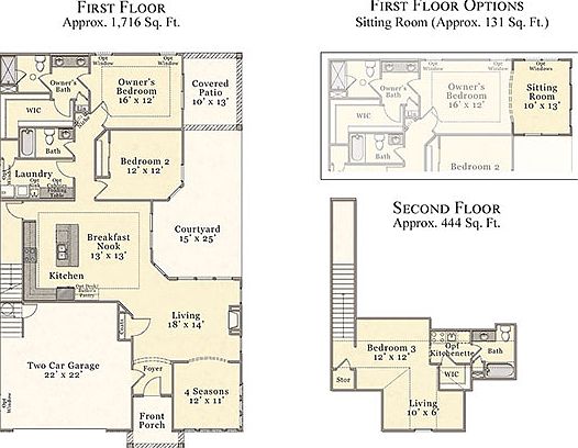 McKee Homes presents the Palazzo Bungalow, a beautiful cottage-style home with three bedrooms, three bathrooms, and oversized two-car garage. This home features an open floor plan, including a four-seasons room and optional sitting room off the master bedroom for extra space to relax. The kitchen features granite counter tops, designer cabinets and stainless-steel appliances. The Palazzo Bungalow includes a second-story bonus suite with full bath and optional kitchenette which is perfect as a guest suite or game room. The Bungalow Collection includes distinctive exterior styled roof lines and supports.