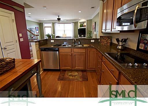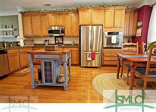 Two bedroom 2.5 Bath TH in desirable Village Green in Savannah Quarters Large front porch Detached garage and fenced in courtyard with extensive landscaping Very light and bright home Hardwoods, Stainless Appliances Upstairs has 2 BR's with Private Baths and Laundry Washer/Dryer included Meticulous