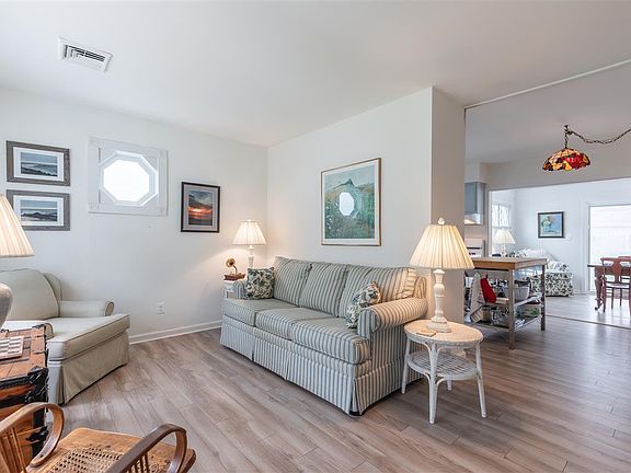 The 9th home from the bay is where you will find this 3-bedroom, 2 bath ranch style home with a detached oversized one car garage. This home has a bit of everything for everyone: Master bedroom with en-suite bath, two full bedrooms (one being used as a den) and a lovely hall full bath, laundry closet, front enclosed porch with screens and storms opening into a full living room, open to the kitchen and viewable all the way to the dining room at the rear of the home. This lovely open space is not often found in similar homes and is bright and welcoming. The home owners have done many improvements to include: entire roof replaced down to the plywood, new floors in main living area, removed all old electric baseboard heat the replaced them with new wood trim baseboards, new garage door, new 6" by 100" wooden fence on one side, updated kitchen: new stove, hood, dishwasher, countertops, fresh paint on cabinets and beadboard, updated electrical outlets, replaced damaged wall in dining room, new washer and dryer, new dryer vent running to the outside of house. Bathroom: new tile floor, sink, cabinet, mirror, lighting, beadboard, updated outside shower, two new storm doors, installed fan in the enclosed porch, painted entire interior, removed old shed, added landscaping and a new one year pest control contract starting July 2019 to name a few things. Being sold turnkey to exclude: Steamer trunk in L. R. and Armchair in L. R. rocking chair in L. R. Almost all wall art and decorations, blue Rooster table, dining table and chairs, two bikes, two boogie boards, lawn mower and tools. Easy to show call today.