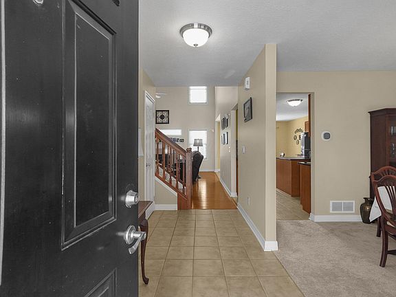 Great open floorplan in this 1st floor primary bedroom home! As you walk further into the home you see the dramatic 2 story great room w/ an open loft looking down below. Great room is highlighted by the fireplace & the large kitchen area w/ granite counter tops & dinette, this flow makes a great area to entertain in. Huge, finished basement w/ several rooms & full bath rough in. Basement offers another place to entertain, workshop & storage. Many new updates, such as roof/gutters (2023), concrete driveway (2023), carpet (2020), HVAC w/ energy efficient 2 stage furnace w/Ecobee (2016), & sump pump w/ battery backup (2019). Ready to move in!