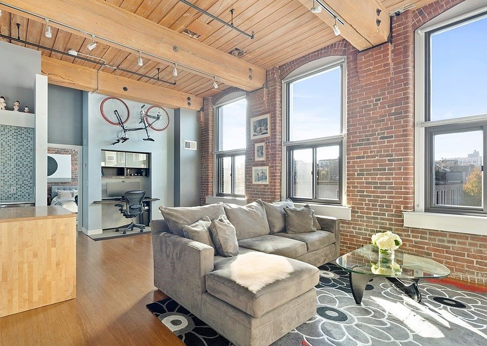 Dramatic brick and beam loft-style condo with parking located in The Foundry on the Seaport/South Boston line. Comprised of 765 sqft, this smart and efficient condo boasts 12ft ceilings and 8ft windows and has undergone an architect-designed renovation including contemporary kitchen, remodeled bathroom, bamboo hardwood flooring, designer lighting, and more. Originally designed as a 2 bed, this unit is now configured as 1 bed w/oversized living/dining, but could easily be converted back with the simple addition of 2 walls. Unique features include kitchen w/full wall of storage and butcher block island, built-in desk/office area, spacious master bedroom w/enormous walk-in closet, & lofted storage throughout. One covered parking space included. The Foundry is a professionally-managed, pet-friendly, elevator building with common laundry (in-unit w/approval) and bike storage. Super location, only steps to the Seaport, 0.6mi to Broadway T (Red Line) and easy access to highways & airport.