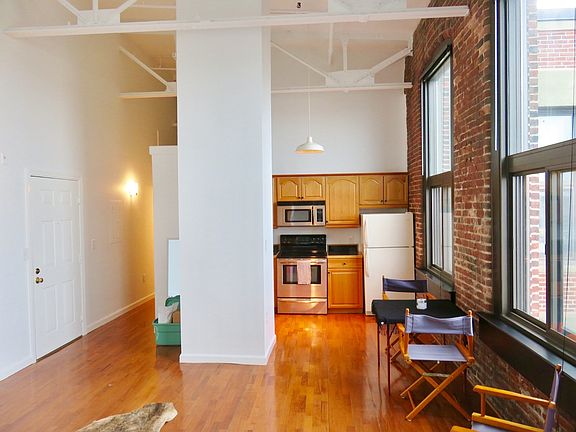 South Boston Loft in the Foundry Building with exposed brick, 14 Foot ceilings and huge windows with Seaport views. Updated kitchen and bath. Tons of storage throughout. Professionally managed building with secure entry and elevator. Bike storage and laundry in basement. On- Street parking with permit. Walking Distance To T, Seaport Area, Beaches, Shopping, Bars and restaurants. This apartment won't last long. This unit is a studio - there is no separate bedroom area. Custom Murphy bed would stay in unit. No undergrads allowed. Strong applicants only. Heat and hot water are included in rent.