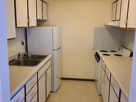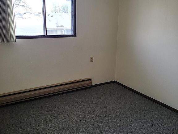 Community amenities include off street parking with 2 spacious lots available for residents and guests, beautiful trees, and relaxing sitting areas outside. Lawn maintenance and snow removal are included in rent. We have a maintenance person that takes care of any repairs needed in the apartments as well as upkeep of the property. There is also an office manager available onsite for any concerns or questions. Water, sewer, and trash collection is included in rent. Resident is responsible for the electricity. Each spacious apartment has its own patio or balcony, large living room with dining area, and includes a stove and refrigerator. There is a cutout for an air conditioner which the resident would have to provide. Community laundry rooms (coin operated) are provided at each end of the building. 1 pet under 20lbs considered. $300 pet deposit and an extra $20 per month.