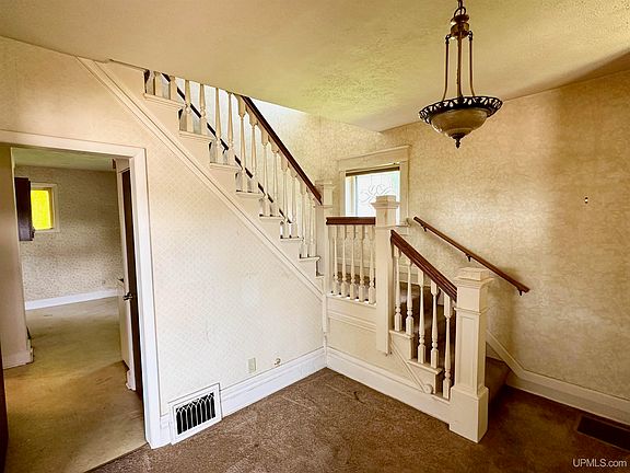 Welcome to this delightful four square house located on a corner lot in Ishpeming and on the Iron Ore Heritage Trail. This 3-bedroom, 1-bathroom home is full of character and potential, awaiting your personal touch and updates. Upon entering the home, you are greeted with a charming foyer that sets the tone for the warm and inviting ambiance throughout. The first floor features a spacious living room, ideal for gatherings and cozy evenings. An adjacent formal dining room awaits, providing an elegant setting for special occasions and family meals. The eat-in kitchen completes the first floor, offering ample space for culinary adventures and the opportunity to create your dream kitchen. Ascending to the second floor, you'll find three comfortable bedrooms, including a generously sized primary bedroom with a sitting area, perfect for unwinding after a long day. With some updating, this charming home can truly become a reflection of your style and vision. Embrace the opportunity to transform it into a cozy and inviting space that you and your loved ones will cherish for years to come.