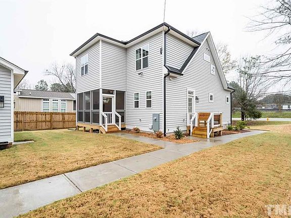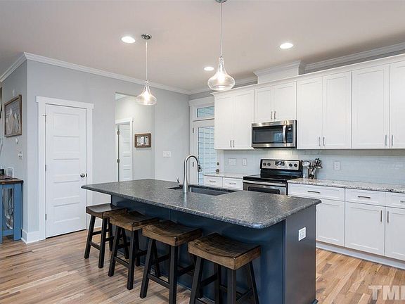 Delightful, nearly-new cottage close to downtown Garner and White Oak shopping! First floor features designer kitchen w/granite tops, soft-close cabs and SS appliances; dining room w/custom wainscoting; living room with brick/shiplap gas fireplace and; gleaming hardwoods! Upstairs features large main bedroom w/spa-like bath + 2 secondary bedrooms and hall bath. First floor laundry with utility sink. Private screened porch with ceiling fan + wired multi-media. Detached 2-car garage! Your new home awaits!!
