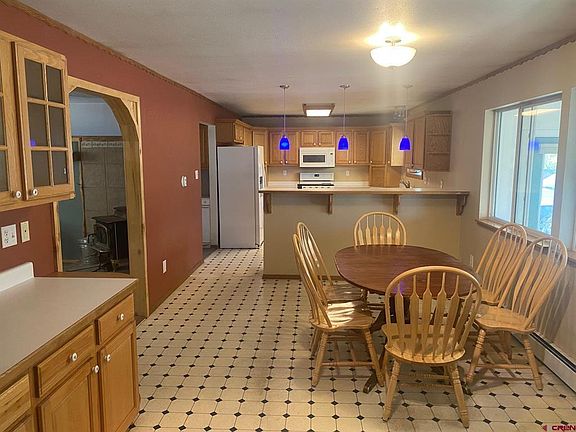 Great corner lot between Pine and Spruce streets on the north end of town and within a few blocks from schools, shopping and bus stops. This spacious home includes three bedrooms and two bathrooms, large living room with wood stove, sunroom and kitchen/dining room along with an upstairs master bedroom suite with office space. The unfurnished basement is suitable for storage, laundry room, workout room, playroom, etc. Fenced back yard with adequate space for motor home or boat and garden area.