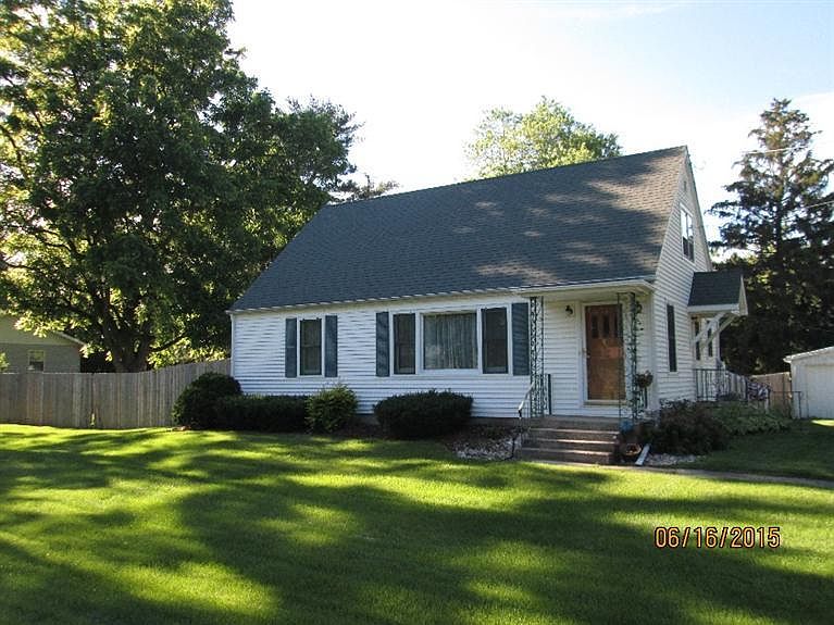 OVER HALF AN ACRE & IN TOWN! Cape Cod with HUGE privacy fenced yard - room for just about any FUN you want! Monster garage - you could park 2 and store 2 & still have a workshop! All original hardwood floors on main level - restored & refinished! NEWER roof, siding, windows & plumbing. Basement features a finished rec-room & has an Everdry Water Proof system with Warranty that stays with the home. Newer stainless kitchen appliances all stay and the floor is upgraded high quality ceramic. You can relax in your Family room/Sun room watching the children frolicking in the back yard; see your garden growing; your pets romping & your man can work in the detached garage making all that noise you can't even hear! * JUST SMILE & COUNT YOUR BLESSINGS *