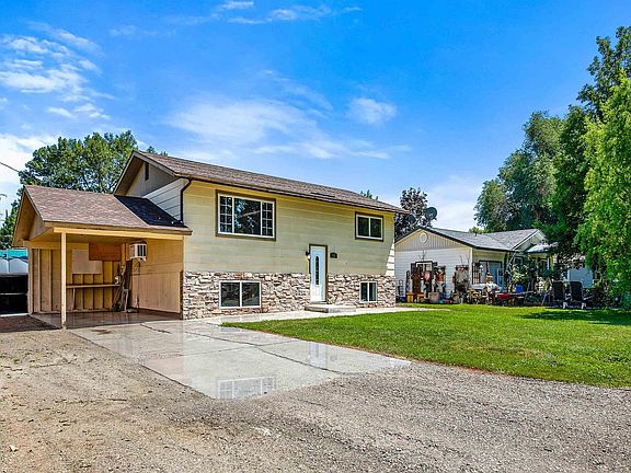 Welcome to your new home in the quaint town of New Plymouth. This charming split level 5 bed, 1.5 bath home has some nice updates and is ready for someone to make it home. The location is ideally placed right in the heart of town. The home has been updated with updated carpet, paint, stainless steel appliances, vinyl windows, and flooring. The main level offers a large living area with nice big windows providing beautiful natural light. You will enjoy the large primary bedroom located on the lower level where you'll also find two additional spacious rooms. The elevated back patio that looks over your quiet, peaceful neighborhood is a great place to relax after work. The large back yard has raised garden beds, a storage shed, a nice lawn and several fruit trees. Come check it out!