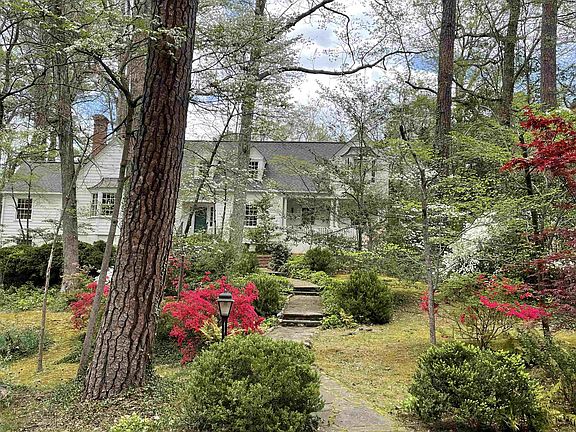 Secluded estate yet in the middle of all things Chapel Hill! Westwood has long been a coveted, storied residential enclave w/close proximity to all historic downtown & vibrant UNC campus have to offer. The perfect location whether attacted to the university for world-class medical care and learning, exceptional academic opportunities, or any of the sporting venues for which UNC is highly respected. The dwelling's original stately design & 1932 construction commissioned for Roy Armstrong, former Morehead Foundation Exec Director & wife, Mae, is regally sited on the expansive parcel w/lush native flora. Exceptional in every way, the residence has been mindfully refined over the past couple of decades preserving historic integrity accented by modern comfort. The main floor bedroom is original private primary bedroom suite. Detailed mouldings, hardwoods throughout, & built-in shelving, plus a lovely paneled office w/windows on three sides offer the ultimate in historic living. Decadent outdoor living spaces, open green spaces, + log cabin, add up to perfect opportunity for life in this residential treausre.
