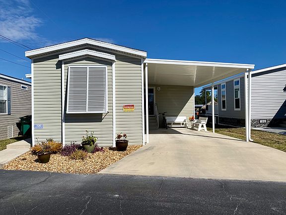 WATERFRONT, DOCK with BOAT ACCESS, 2/2 2016 HOME ! Don't miss out on this Incredible deal on this Banana River Waterfront home ! This is a BEAUTIFUL 2/2 2016 Champion Homes of Merit Manufactured home including PRIVATE DOCK with boat or jet ski access to the Banana River. Off street covered parking, back screened porch with great views ! It sits on leased land in Merritt Island Village. The park is a 55+ adult community with waterfront lot rent of just $625 monthly. This fee includes water (3kg), sewer, trash/recycle pickup, and basic lawn care. 1 small animal under 25lb permitted with park approval. RV/ Boat parking available, check with management. No motorcycles permitted. FEATURES: - Great location, near Cape Canaveral cruise terminals, Cocoa Beach, Kennedy Space Center, shopping, dining - Covered parking, paved driveway, gutters , ADDED landscaping and Bahama Shutters -Elegant Oval Glass Front Door with Added Storm Door. - NEWER home with newer Whirlpool kitchen appliances AND Kenmore stainless steel stackable washer /dryer - Double sided stainless steel sink added with gooseneck faucet/sprayer -DOUBLE PANE windows fold in for easy cleaning. - Screened back porch to relax and enjoy nature views, water activities. -Dock and patio furnishings included ! - 4 Ceiling fans - All window treatments ,blinds and curtains remain.