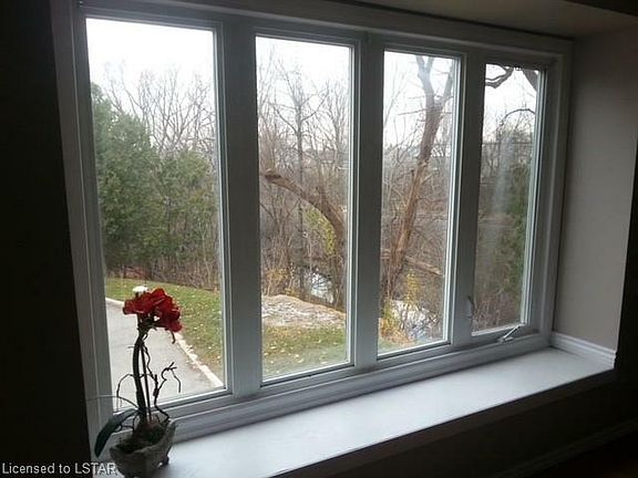 Quiet and spacious end unit with garage and private parking. Enjoy the privacy and tranquility offered by this unit, which backs onto a gorgeous ravine. This is a very quiet and well kept complex, with the proximity to city center and a short walk to Victoria Hospital. Energy efficient furnace, newer windows, laminate flooring, large master bedroom, bright eat-in kitchen leading to private patio. 4 appliances included, plus a brand new AC unit. Unit is currently rented on a month to month basis. Please allow minimum 2 months notice for vacant possession.
