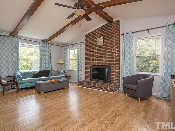 Adorable ranch home, a short drive to downtown RAL! Updated kitchen w/granite counters, tile backsplash, SS apps, large pantry, breakfast area w/bay window. Family rm features vaulted ceiling, exposed wood beams, raised brick hearth, wood burning FP. Master bed w/crown molding & large closet. Bay window & updated fixtures in Mbath. Good sized secondary beds, shared full bath w/dual vanity. Large yard, privacy fence, deck, attached storage. Close to shopping ctrs, restaurants, Lake Benson, White Deer Park!