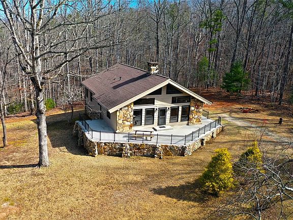 This 5 acre mountain cottage is the perfect destination for relaxation! A large portion of the 5 acres is open yard with an old structure that would make a perfect chicken coop. There’s a large concrete patio in front & on the sides of the home perfect for enjoying the outside area. As you enter the home you will be awe struck by the double side wood burning stone fireplace, cathedral open beam ceilings and wide planked pine hardwood floors. The bedrooms are in the back of the house the master bedroom has a large walk-in-closet w/washer/dryer hookups if needed. A large double sink bathroom w/ a tub/shower combo. You have 2 guest rooms on the other side of the house that could be as 2 bedrooms or 1 bedroom & an office area. This home has ample storage with a pull down for a large storage area in the attic. You can all access a large crawl space area around the back of the home thru the double doors large enough to store a riding mower. This area could also be concreted for a workout area or maybe even a game room. The 168 acres tract behind this home has been owned by the same family since 1958!