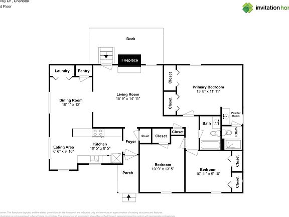 Home Features and Amenities: Air Conditioning, Deck, Fireplace, Long Lease Terms, Pet Friendly, Primary Bedroom on Main, Smart Home, W/D Hookups, and professionally managed by Invitation Homes.