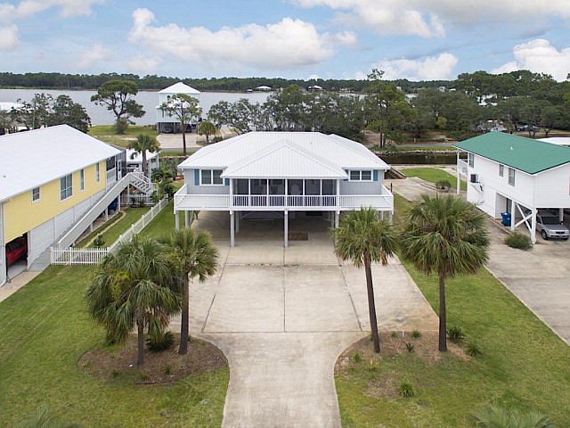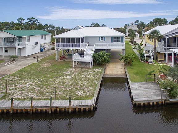 This lovely waterfront home is perfect for the boat lover who enjoys entertaining.The concrete drive has a boat ramp and a jet ski lift on the water side north of the home.Under the home there is an outdoor shower, a utility room and a half bath. Over 975 square feet of decks, 2 screened and 3 open for entertaining & watching natural wildlife. This large 3 bedroom, 2.5 bath home has new solid wood encased double hung PELA windows. Metal roof installed in 2017. HVAC system is less than five years old. Large open Living Room, Kitchen and Dining Room.This home has had one owner. Walking distance to shopping, ,restaurants, the beach, Waterville USA, Gulf Shores zoo,and the trails in Gulf Shores that lead to Orange Beach via the State Park. There is even a covered space under the home allocated to install a lift up the single flight of stairs. 320 Windmill Ridge Rd sits in the 6 month rental restriction district of Gulf Shores. This owner thought of everything convenient for boating.