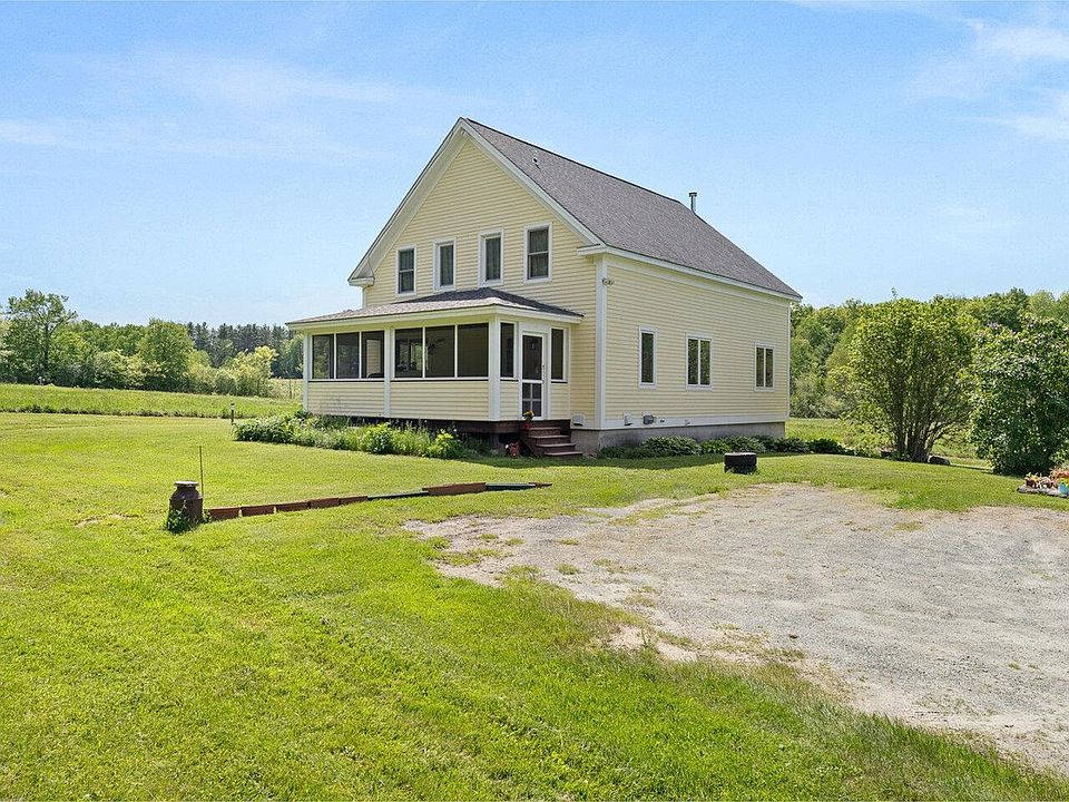 A true Vermont lifestyle! This beautiful, post & beam country home is situated in an idyllic meadow, surrounded by a sugarbush, picturesque hills, and wildlife. Large windows throughout the home showcase panoramic views and natural beauty. Screened-in porch and mudroom are priceless for their practicality. A full 1st floor bath has a shower and clawfoot tub! Enjoy a custom kitchen with cherry cabinetry and a wide breakfast counter. Open-concept floor plan, cathedral ceilings, and rustic, wide-plank pine floors. A pellet stove provides ambiance and warmth. Head upstairs and you’ll enter a relaxing loft surrounded by 3 bedrooms and a ¾ bath. Primary bedroom has Euro-style tilt-turn windows and a laundry chute. Lower level has a laundry/utility room and a partially finished space with natural light, wood-burning fireplace, and ample space to enjoy cozy evenings by the fire! Cedar-clad home nestled on 10.2 acres, ideal for observing songbirds. Only 6.7 miles from the closest grocery store. Be on the mountain skiing in 30 min and enjoy the Westford trail system! Other details: first-floor light fixtures by Hubbardton Forge, including wall sconces and pendants, lightning rod system, baseboard hot water heat (propane), updated windows 2014, heat pump hot water heater 2024, built in 2002 as an Energy Star rated home, roof replaced in 2017, siding painted and window trim replaced in 2019.