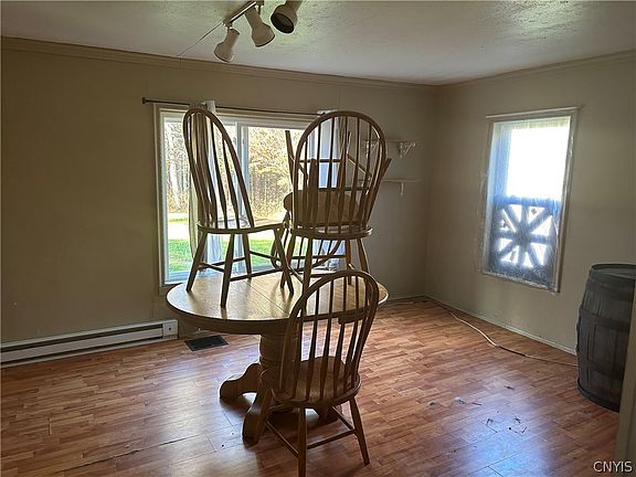 Hunters dream! Fixer upper bordering state land with tons of potential! Being sold as is. This home is in a beautiful Adirondack setting with tons of space! Make this place your own! Laundry is on the first floor. Spacious kitchen sits between the dining room and large living room. Huge two stall garage has plenty of space for your vehicles, storage and a workshop!