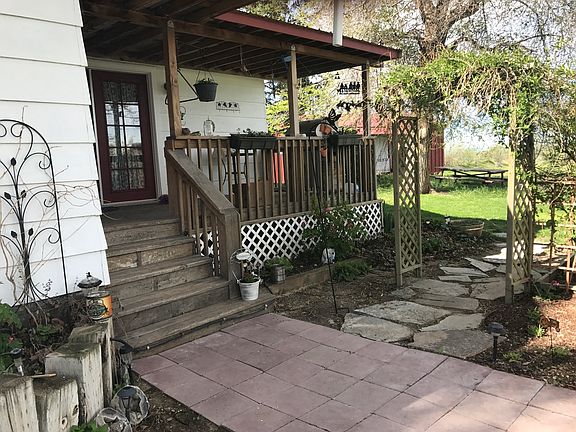 Property Is For Sale By Owner: 9.31 Acres. Secluded Country Living! 1823 sq ft home. Home has a "Great Room" with vaulted ceilings which includes kitchen, jennaire range, breakfast bar, dining room, nook and living room, open floor plan. All recently painted, new laminate flooring in living room. New laminate flooring in all bedrooms. Separate laundry room with new flooring/pantry, mud room located off of laundry room with separate entry, Redwood covered deck with kitchen entry. Property has a added bonus! Country Guest House close to house includes 512 sq ft of extra living space. 2 bedrooms, 1 bathroom/shower & deep sink in entry, covered front porch for rocking chairs. Mother in law ready or family visits. New laminate flooring in one bedroom, carpet in second room. Guest house interior newly painted. 512 sq ft tool/work shop with work benches & shelving under guest house. Property has various outbuildings including large livestock/horse barn, tack shed, small shed barn, chicken house, wood shed, storage building, open shop or garage set up for welder. Fenced pasture areas & 4.3 acres irrigation water with sprinkler pipes. Partial cellar under house for canning storage. Wood stove in home.