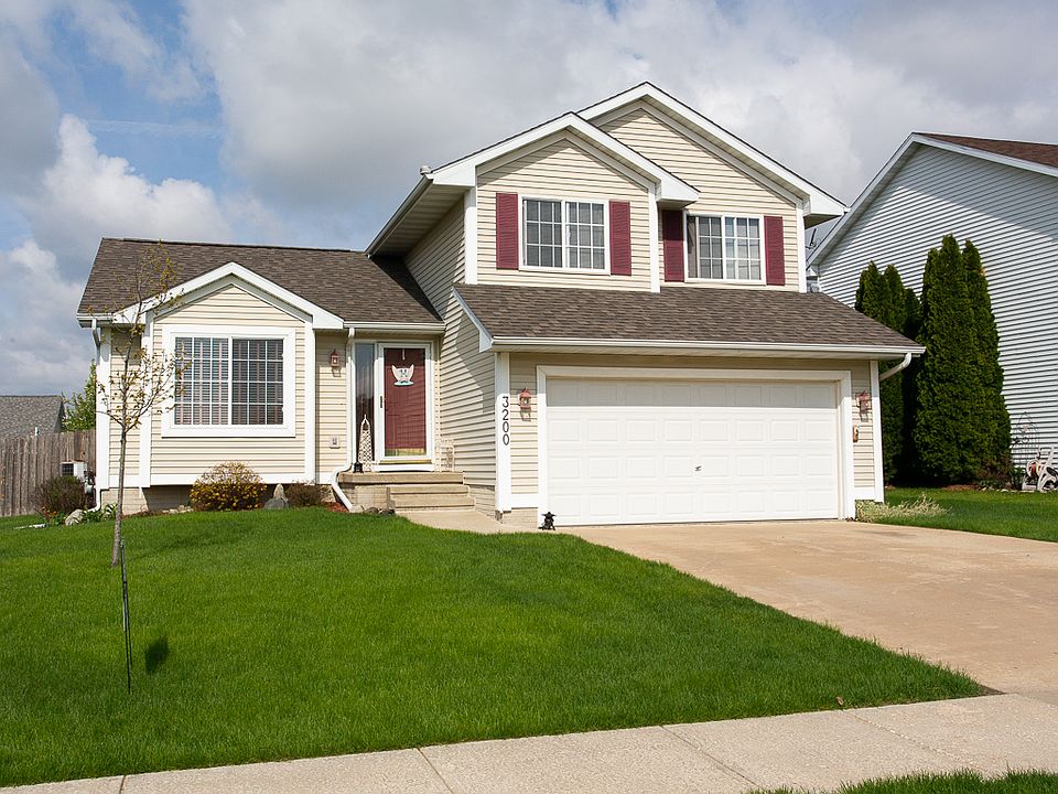 A home for all reasons located in a desirable neighborhood in Marion. Popular open floor plan- kitchen with upgraded appliances, ceramic tile flooring, breakfast bar, vaulted ceiling, and decorative ledge. The deck off the kitchen/dining area provides for expanded enjoyment and overlooks a large and completely fenced backyard. Also features: living room/family room with gas fireplace, first floor laundry room with half bath and easy access to the 2-car garage and basement. 2nd level has three bedrooms, 2 bathrooms. One bathroom is off the master bedroom. Plenty of storage in the basement or garage.