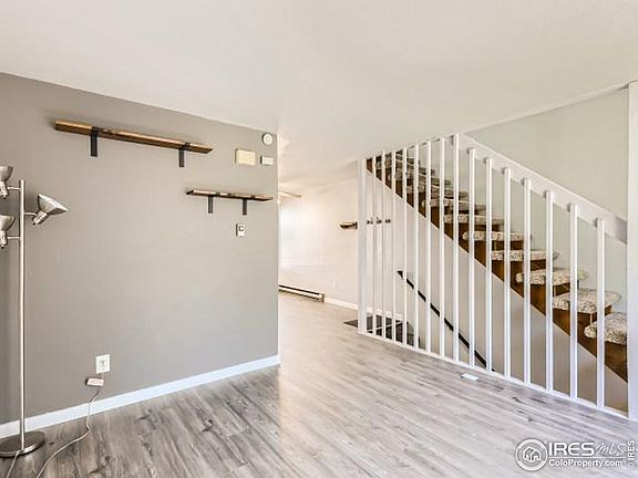 Move in ready Townhome on the westside of Fort Collins. Main level features a living room with a wood-burning fireplace that opens to the eat in kitchen area. The kitchen has been updated with cabinets, countertops and stainless steel appliances. The second floor has two spacious bedrooms and a full bath. The basement area includes a large laundry room and access to the oversized 1 car garage