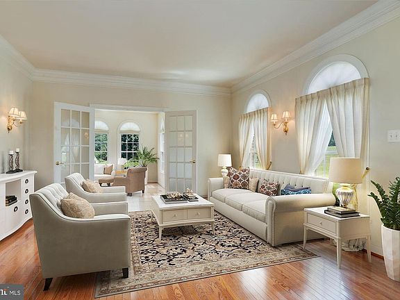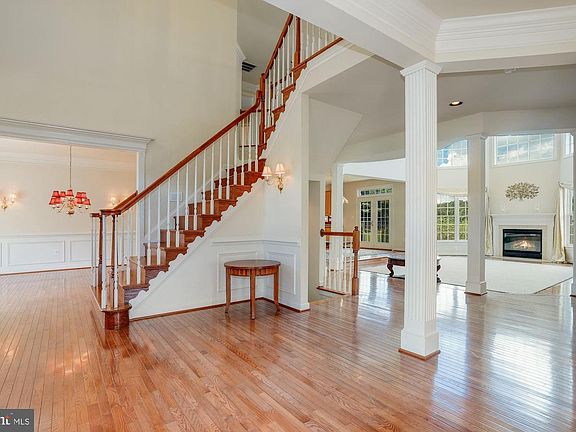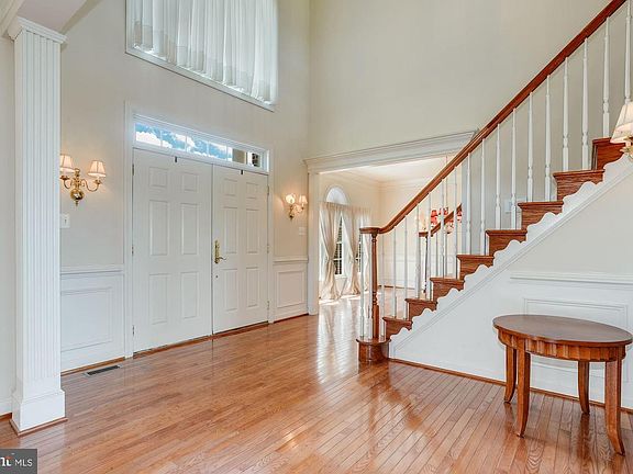 Incredible colonial style home located in River Downs golf course community! Featuring sun-drenched lofty windows, grand two-story foyer, stately columns, amazing tray ceilings, and gleaming hardwood floors! The living room is graced with crown molding and the formal dining room is highlighted with classic chair railing, crown molding, and box wainscoting; Eat-in kitchen is appointed with sleek stainless appliances, upgraded countertops, center island, double wall oven, ample cabinetry, breakfast bar, butler's pantry, planning station, and breakfast room with picturesque backyard views; The impressive two-story great room situated off the eat-in kitchen takes center stage with breathtaking soaring ceilings and fireplace allowing a touch of ambiance; Inviting sunroom with French doors, private office, laundry room, and powder room complete the main level; The primary bedroom is embellished with a sitting room, two walk-in closets, full bath with dual vanities, soaking tub, and separate glass-enclosed shower; Three additional bedrooms and two en-suite full baths conclude the upper level sleeping quarters; The exterior features , landscaped grounds, private expansive corner lot, backs to trees, and three-car attached garage. This remarkable property aims to please and is truly the embodiment of Maryland's good life! A MUST SEE!