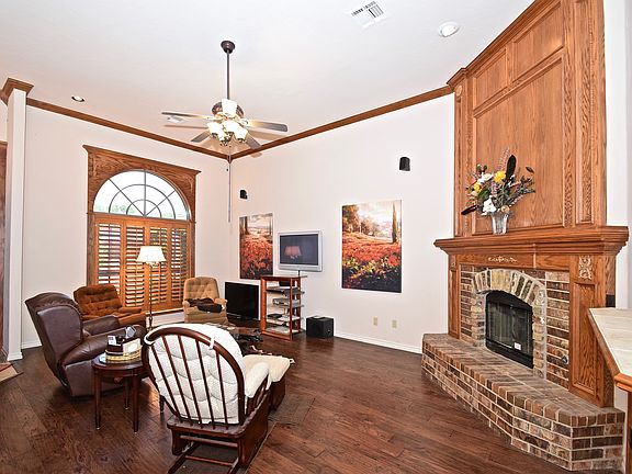 Open House this Sunday 2-4 pm : Sharp townhome convenient to OU & I-35. Wood flooring in living and hallway. Ceramic flooring in kitchen and dining, 12" ceramic tile counters, crown molding, 12' ceilings, superior cabinetry, and wood trimmed fireplace. HOA includes yard maintenance and sprinklers. Separate jetted tub & shower in master bath. Lovely private patio and wrought iron enclosed backyard. Solar screens on all windows.