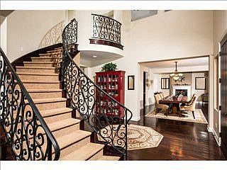 This elegance of Southern California comfort home is located in an exclusive gated community of La Costa Ridge. This fine designed home with all neutral decor has stunning upgrades. Custom iron staircase, solid hard wood floors and a chefs kitchen with Euro Design wood cabinetry in Mahogany finish, Thermador appliances, stainless steel built in sub-zero, two extra refrigerator drawers, granite counter with decorative tile back splash, large breakfast bar, butler's pantry with sink,see supplement