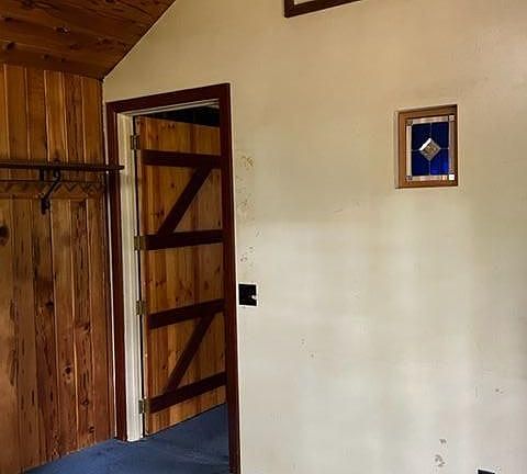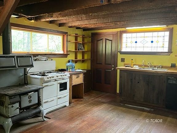 A Cabin in the woods with Browns Creek running through it! PRICE REDUCTION!! Tucked back off the road is this charming rustic 2 story 1950's cabin that sits on 2 acres. Wood floors, rustic wood exposed beams, vintage cook stove, beautiful stained-glass above the sink are part of the charm that you'll find in this roomy kitchen. Downstairs you will find knotty pine walls and vaulted bedroom ceiling, custom interior doors, stained glass, mini split for heat & air, plus wood stove on brick hearth, laundry room and bath with a clawfoot tub & natural light coming from the skylight. Open wood staircase from the kitchen brings you up to a spacious mstr bedroom loft with closet, vaulted ceiling & a little deck. Enjoy the front deck w/ room set up the BBQ & relax and take in the wooded setting. Back door entry offers a smaller back deck w/ built in benches. Outbuildings include a detached garage/shop w/ carport, well house w/ bonus room, woodshed & garden shed. Fences marks what was a nice established flower & vegetable gardens and chicken coop. Beautiful trees surround the home w/ room for animals, parking for boats, trailers and more. Property has great usable ground that borders SPI on one end & goes across Browns Creek on the other sid