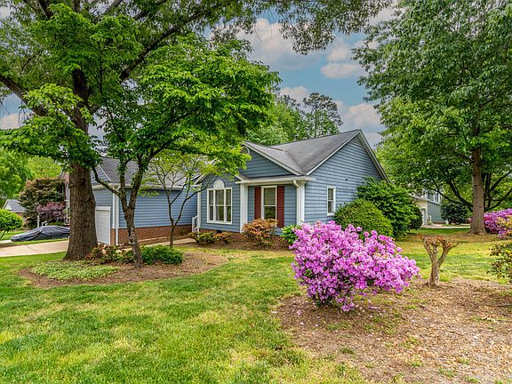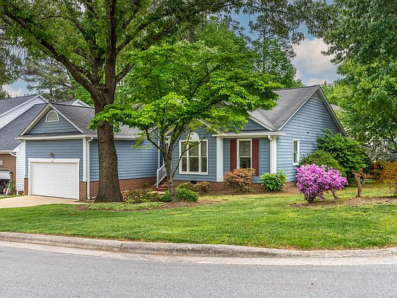 Location is everything! This beautiful one-level home is situated in a fantastic walkable neighborhood, just a few steps away from the Simms-Branch Trail and Durant Nature Park. It's also conveniently close to shopping and dining, and commuting is a breeze with 540 nearby. The neighborhood features excellent amenities such as swimming pool, tennis court, and a tot lot. The HVAC was replaced in 2023, and the rear deck boards were replaced in 2024. The house has a gas water heater, gutter guards, laundry room with cabinets for storage, double-sided gas fireplace, and solid wood interior doors. The primary bedroom has a sizable walk-in closet, double vanity, separate water closet, jetted soaking tub, and step-in shower. It's perfect for entertaining with a separate wet bar and dining room. This home has been lovingly maintained, and you don't want to miss it! T